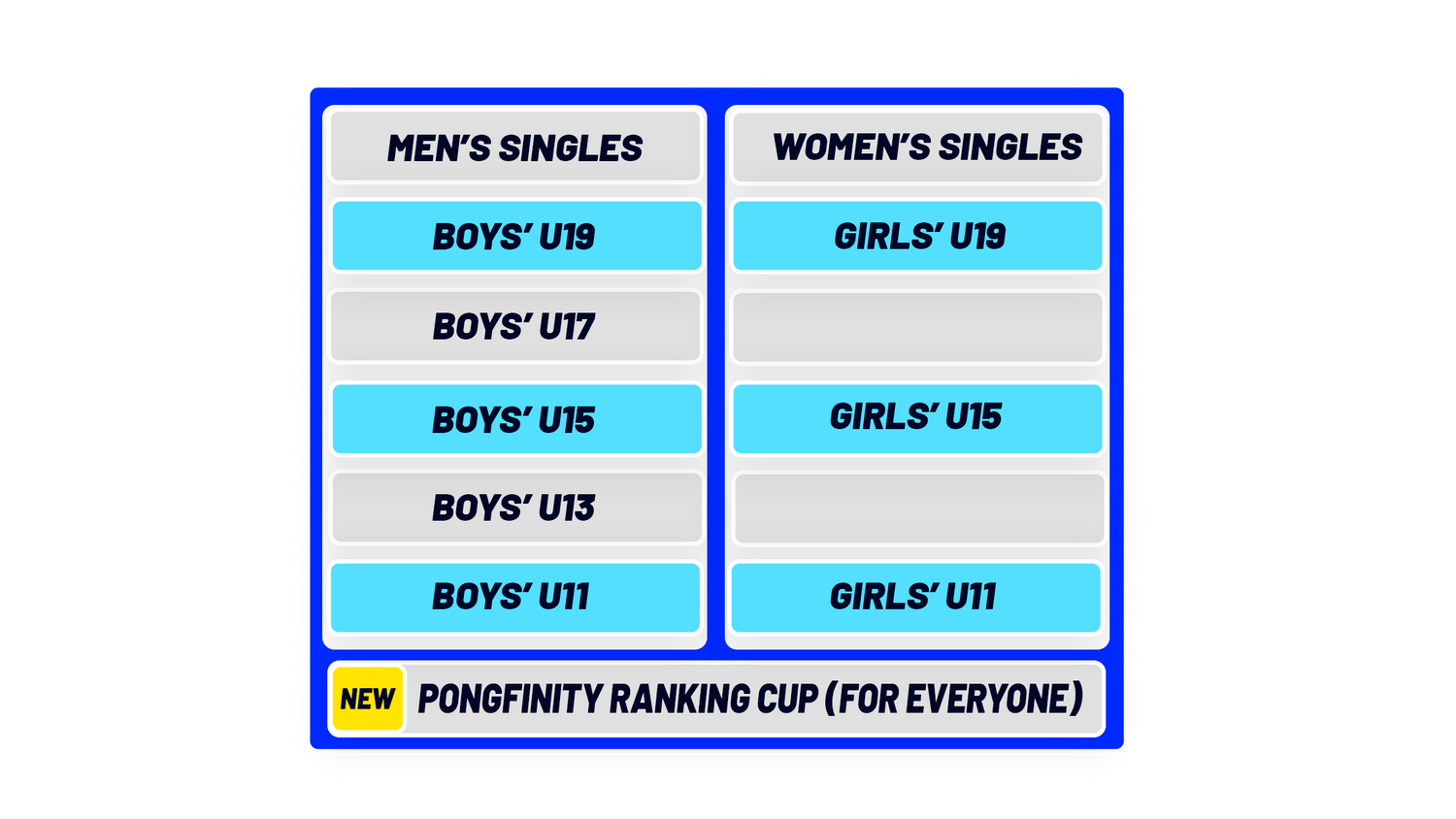 The top 3 in the Pongfinity ranking cup category will get a prizes and the winner of each category will Get to play a match against Pongfintiy